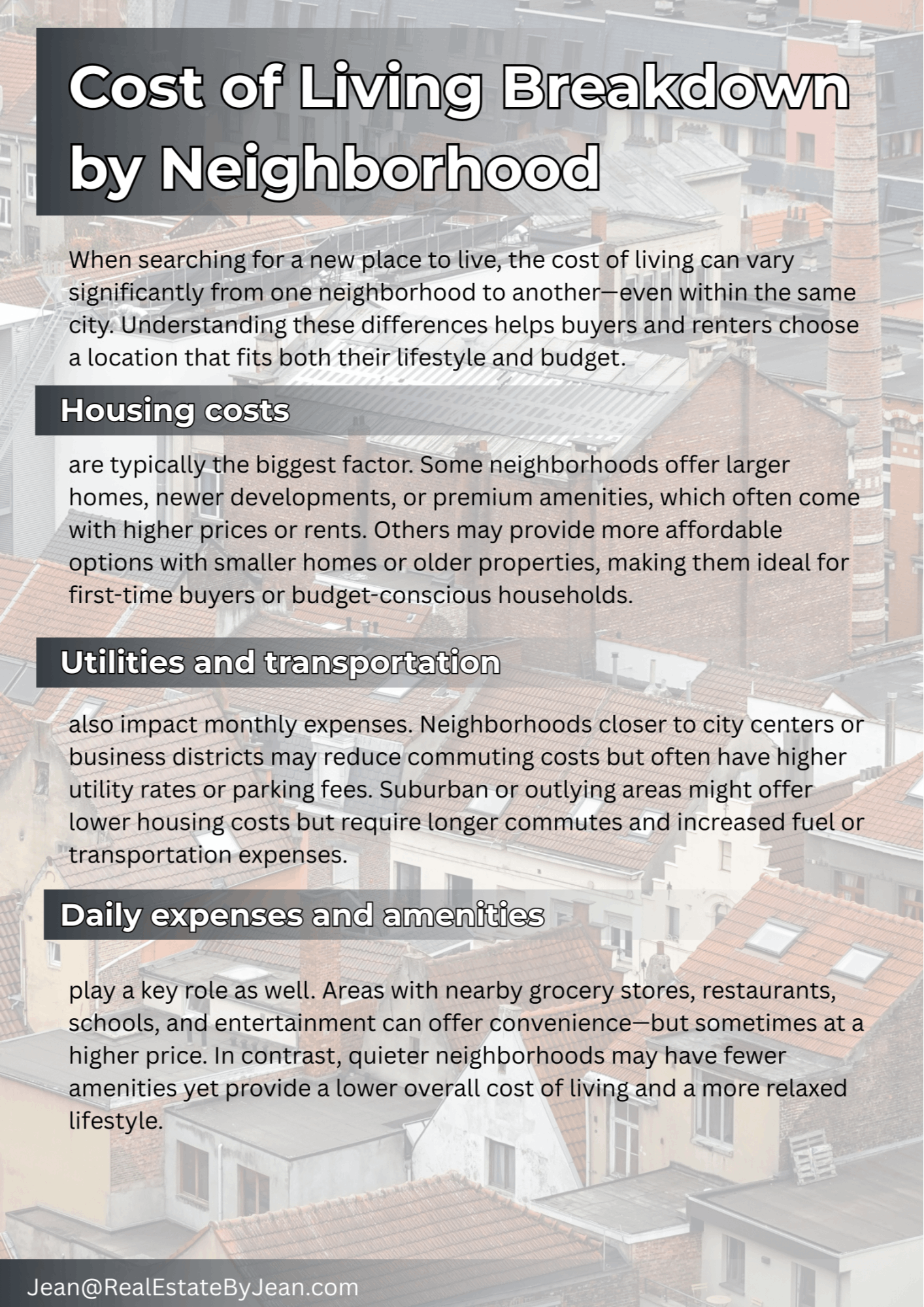 Cost of Living Breakdown by Neighborhood